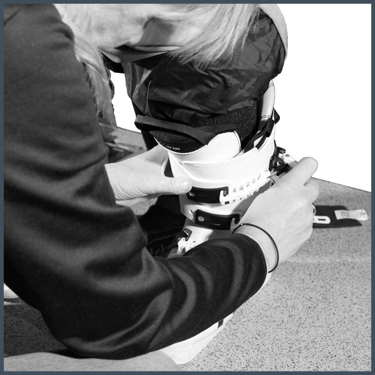 It’s really important that you put your boots on properly every morning. Even though they’re the right size and the right shape, putting boots on incorrectly can result in all sorts of problems – cold feet, sore toes, shin pain and instep and forefoot pressure can all result from putting your boots on wrongly. Your skiing performance can also be adversely affected!