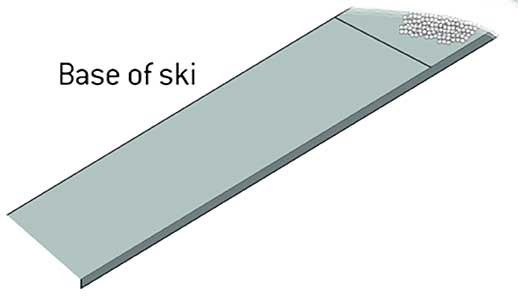 The base of the ski is the part of the ski that slides on the snow. The quality of the base, the molecular weight of the plastic p’tex material that is used to construct the base and the condition of the base which is determined by the quality of the base material all affect how smooth and fast a ski will glide on the snow.